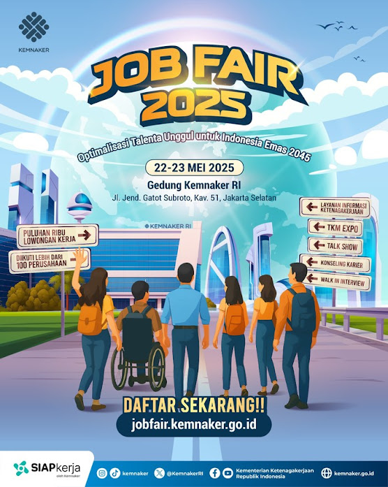 Job Fair Kemnaker 2025 mengusung tema “Optimalisasi Talenta Unggul untuk Indonesia Emas 2045”.